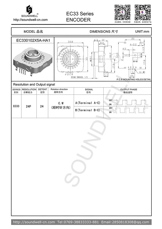 EC33增量型中空編碼器優(yōu)點:較長的使用壽命,內軸自帶按壓復位功能,可配合按壓開關用。手感清脆,